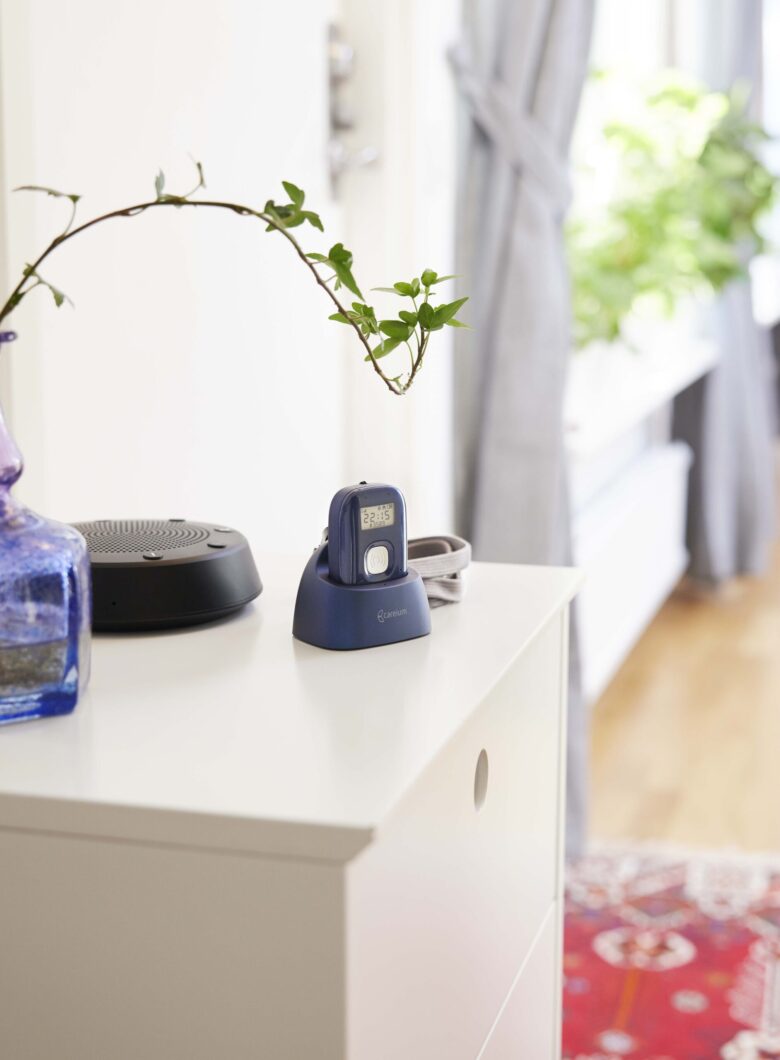 Unsere stationären Hausnotrufgeräte werden zusammen mit einem tragbaren Alarmsender verwendet, wie z. B. unserem diskreten Enzo oder der eleganten Halskette Ellis. Wenn der Benutzer den Knopf drückt, geht der Alarm sofort an eine 24/7-Hausnotrufleitstelle. Dort nehmen professionelle und engagierte Operators den Anruf entgegen – ruhig, umsichtig und souverän, damit schnell die richtige Hilfe zum Einsatz kommt.