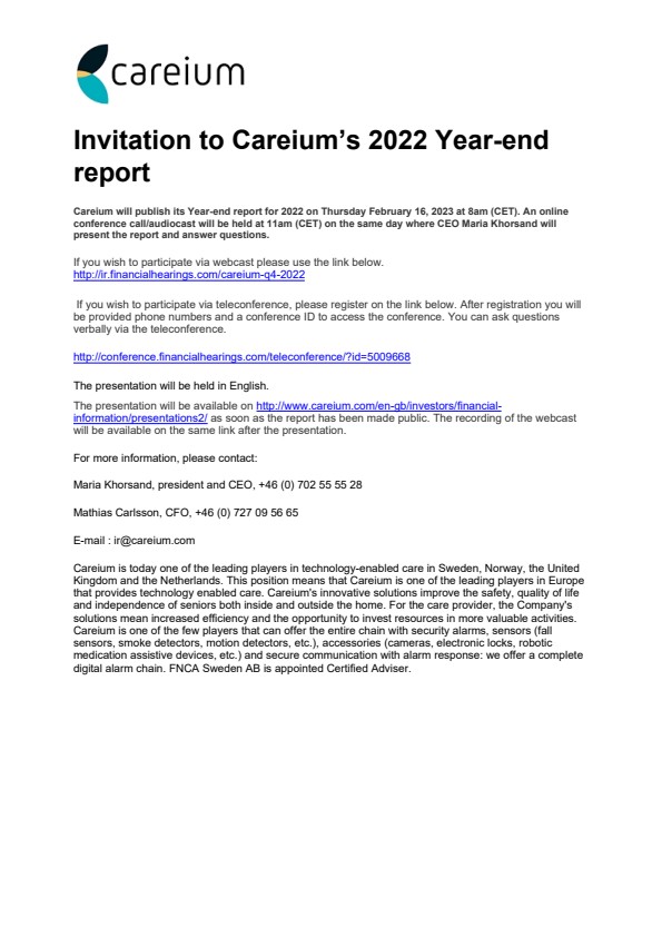 Invitation to Careium’s 2022 Year-end report